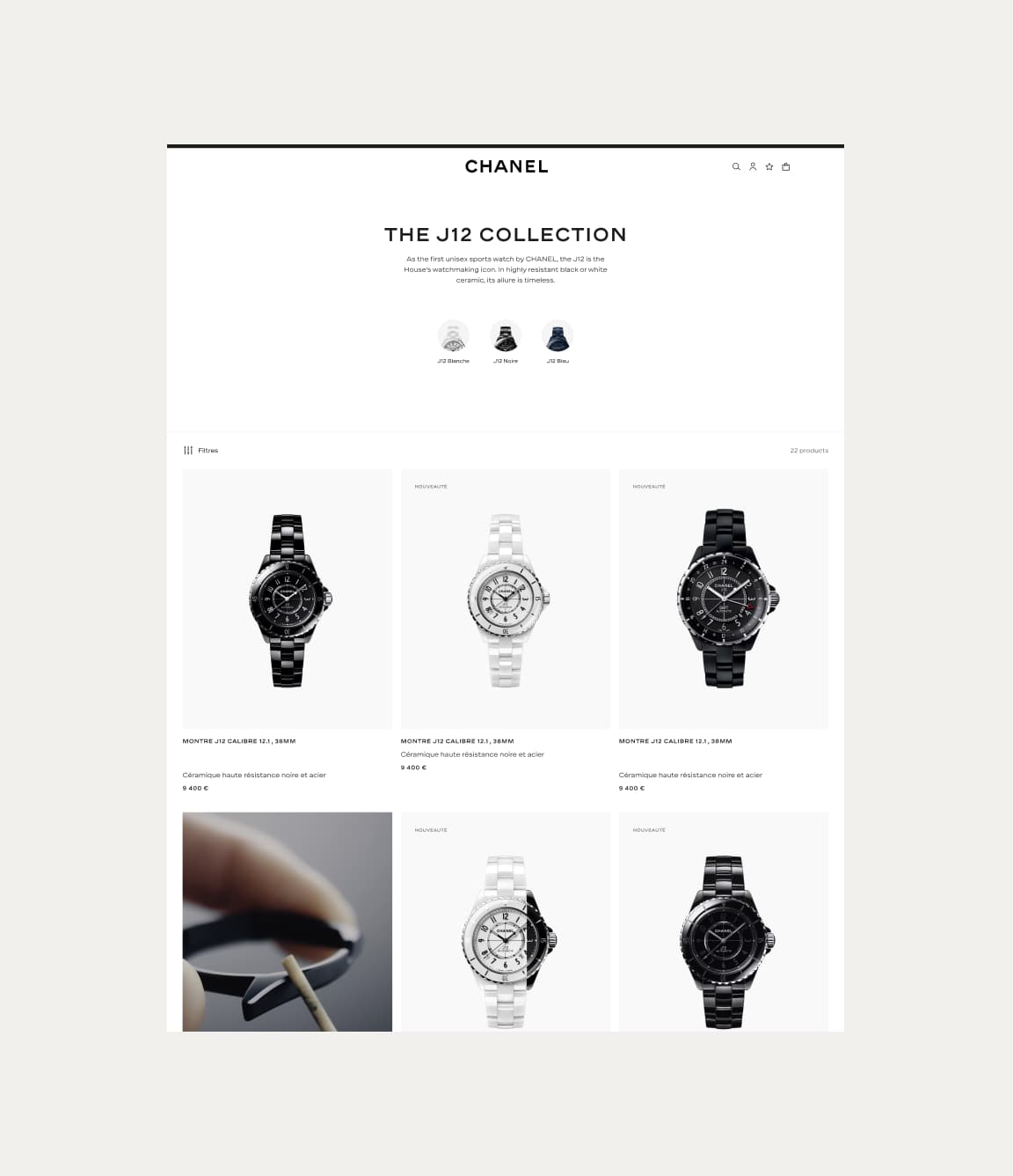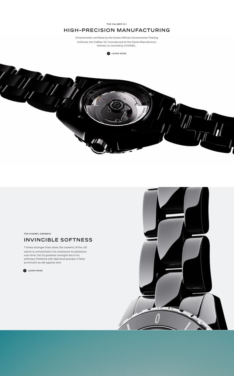 In parallel, I reworked the J12 product and listing pages as part of a new page system. First created for J12, it was designed to become the foundation for other watch and jewelry pages across the CHANEL ecosystem.